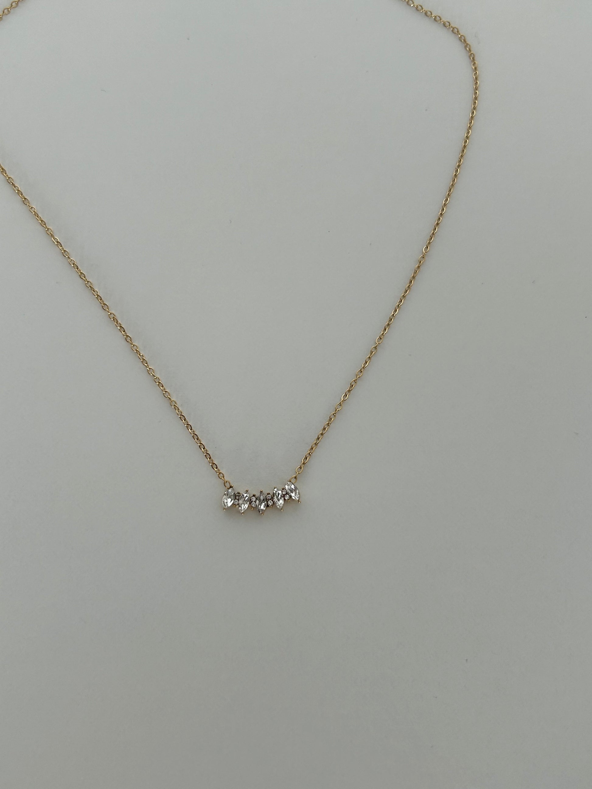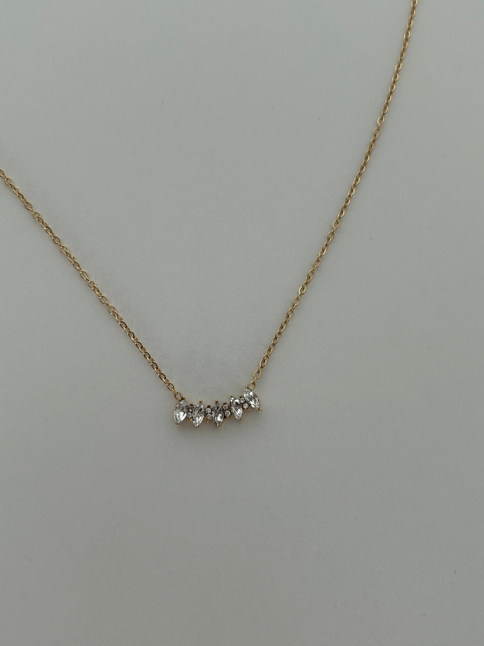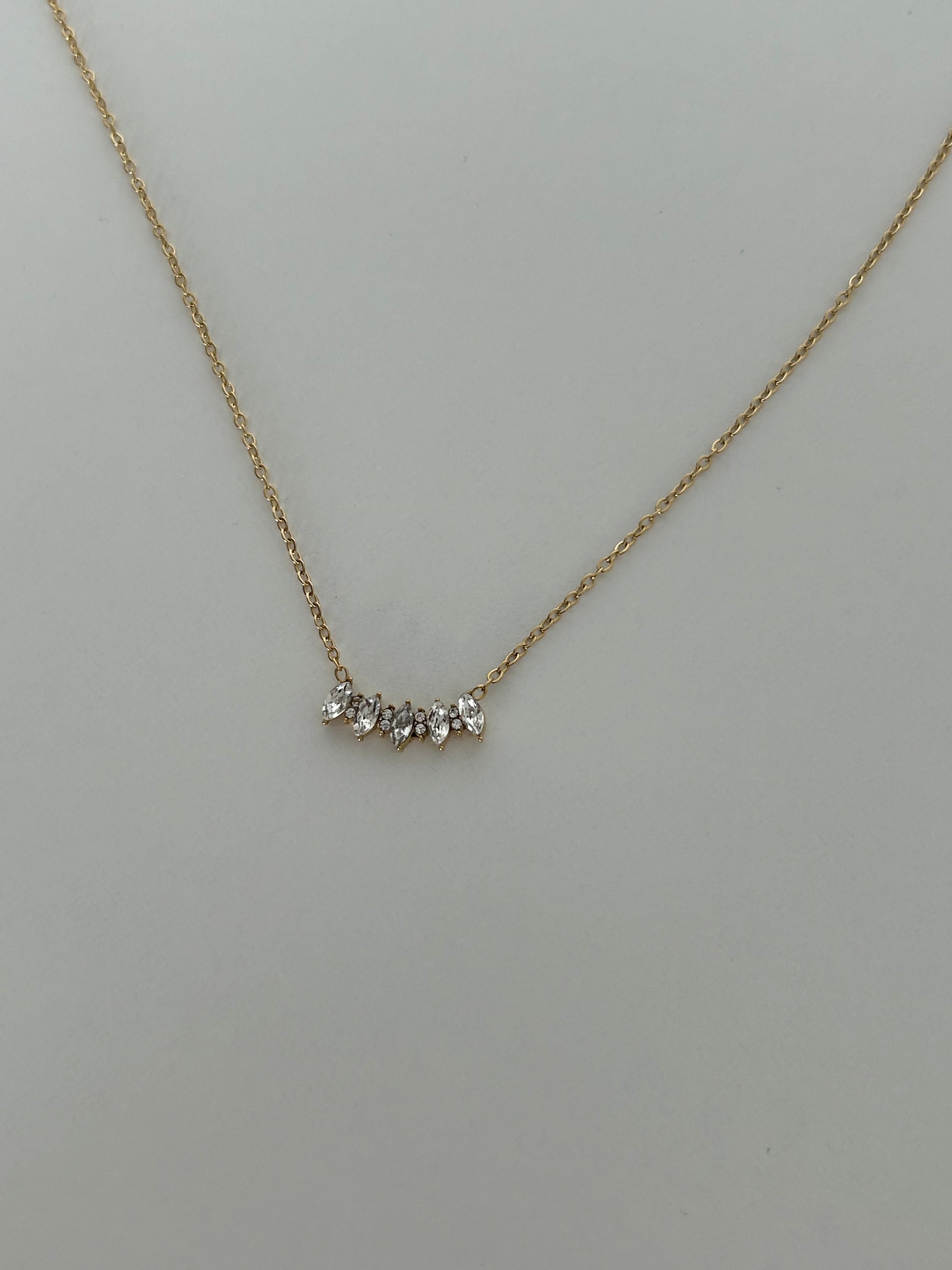 An elegant piece, featuring a stunning zircon pendant delicately hung on an adjustable chain for the perfect fit. It's a timeless addition to any collection, effortlessly elevating any outfit with its sophisticated charm.