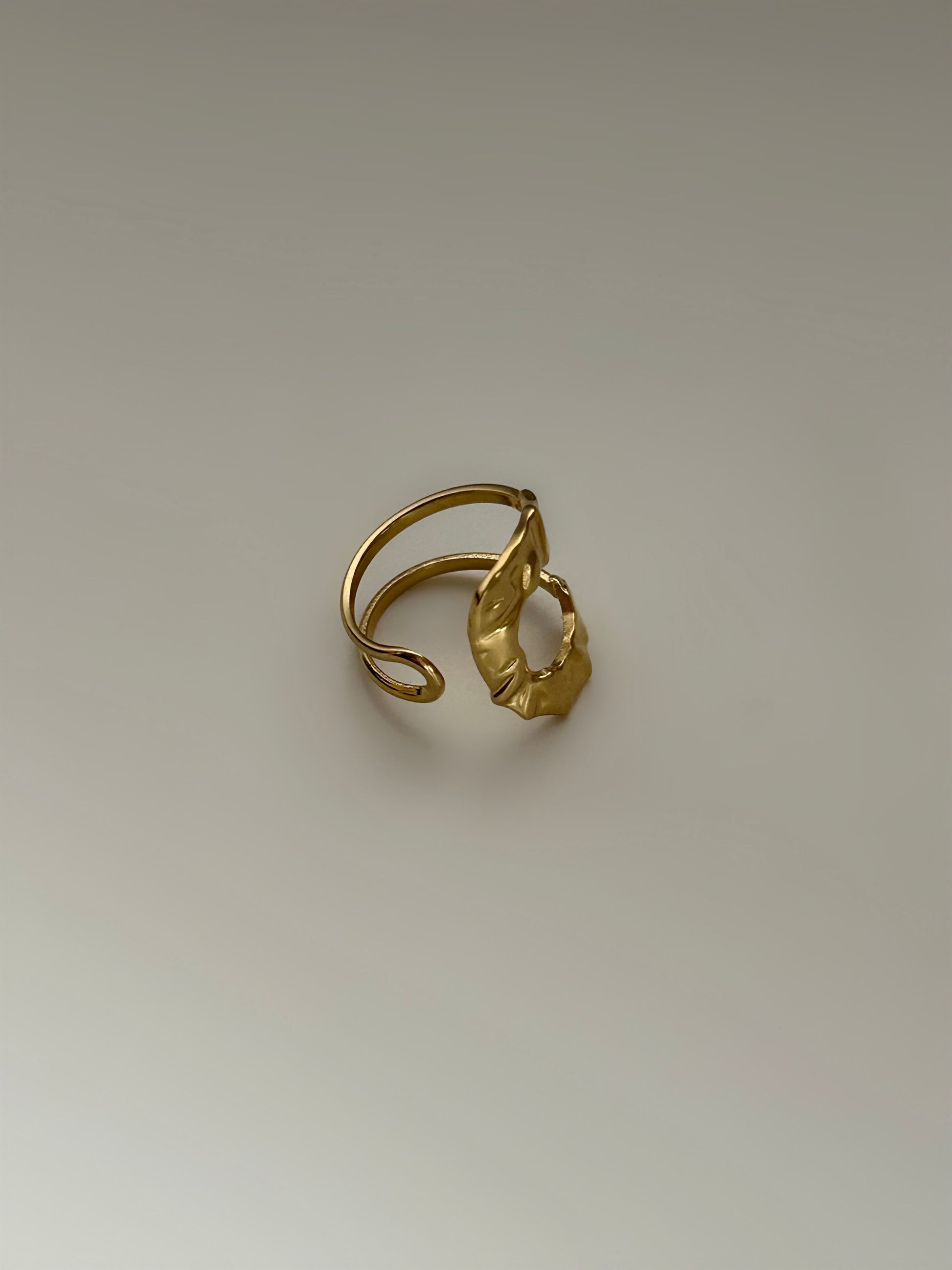 Découvrez notre bague LANA, ornée d'une pièce échancrée martelée. Ce bijou unique allie élégance et caractère, grâce à sa surface martelée et son design échancré distinctif.