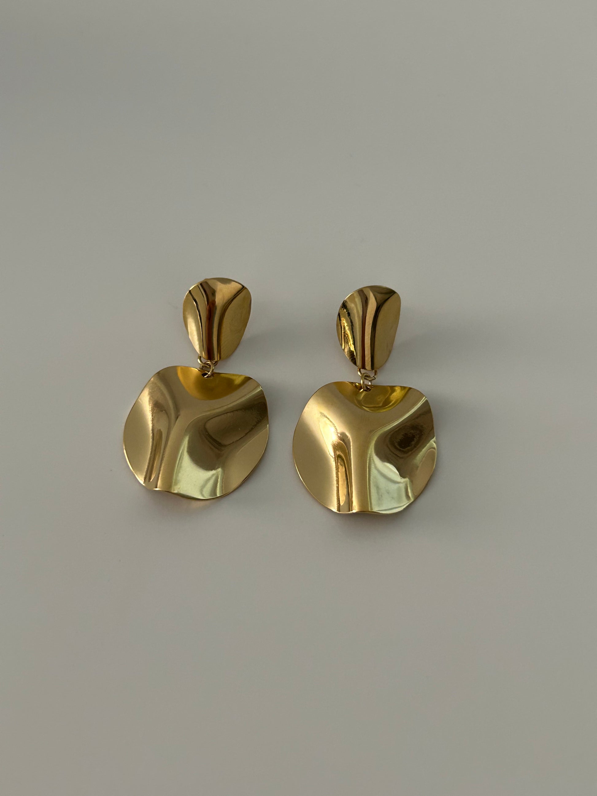 Les boucles d'oreilles Leila présentent un design rond et asymétrique doré.