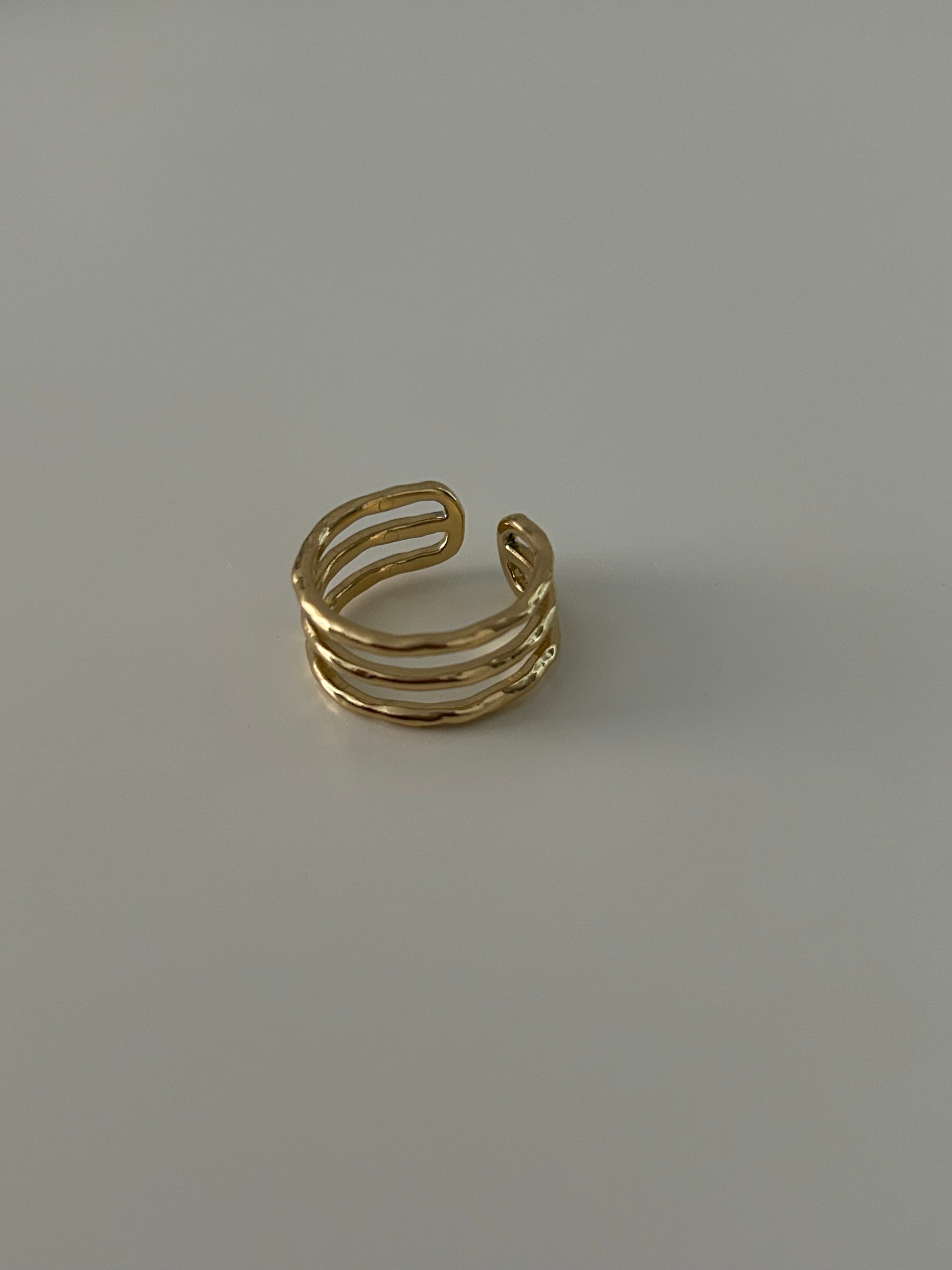 La bague LOU dorée est conçue avec trois couches finement martelées pour un look sophistiqué et élégant.