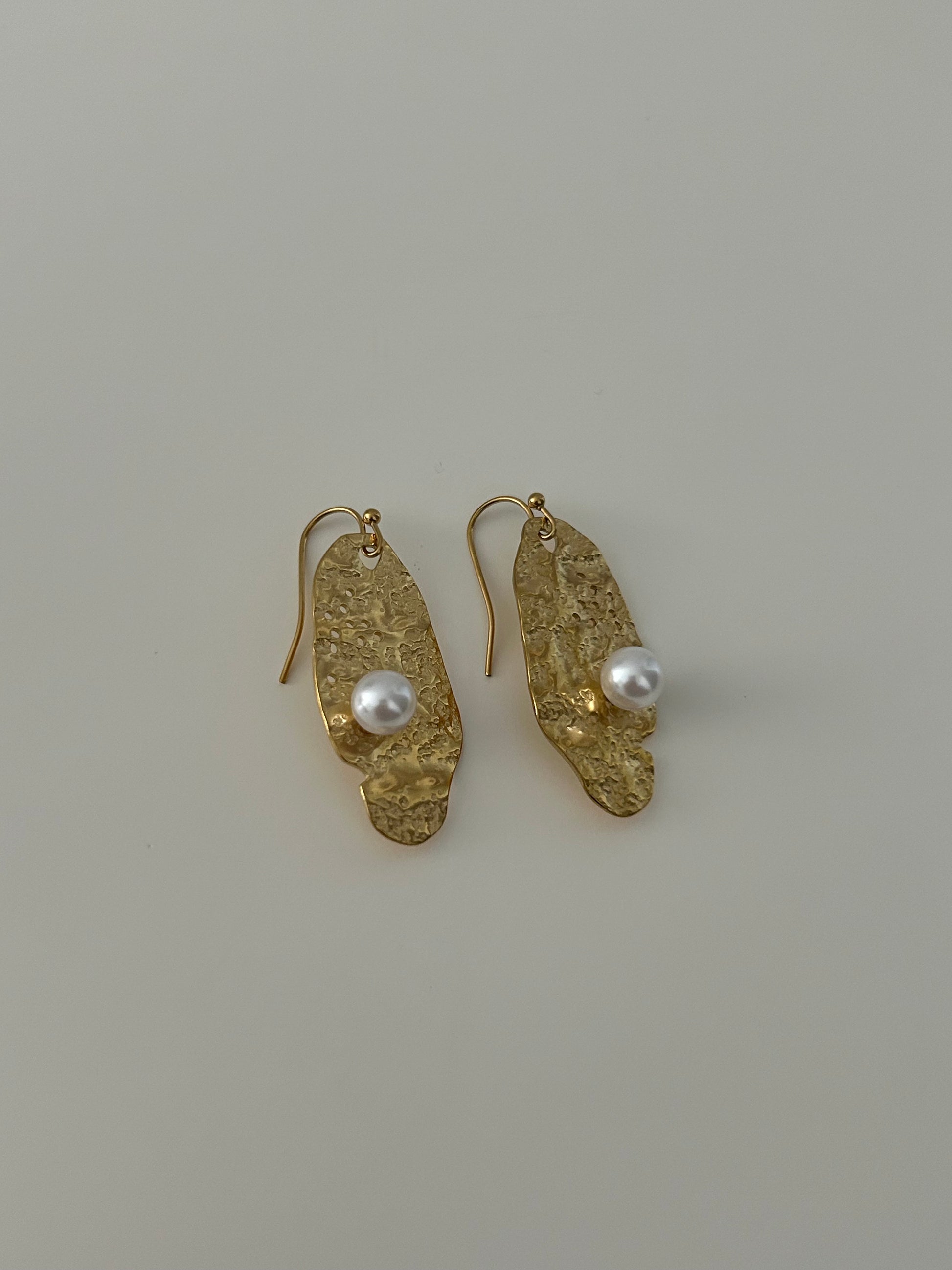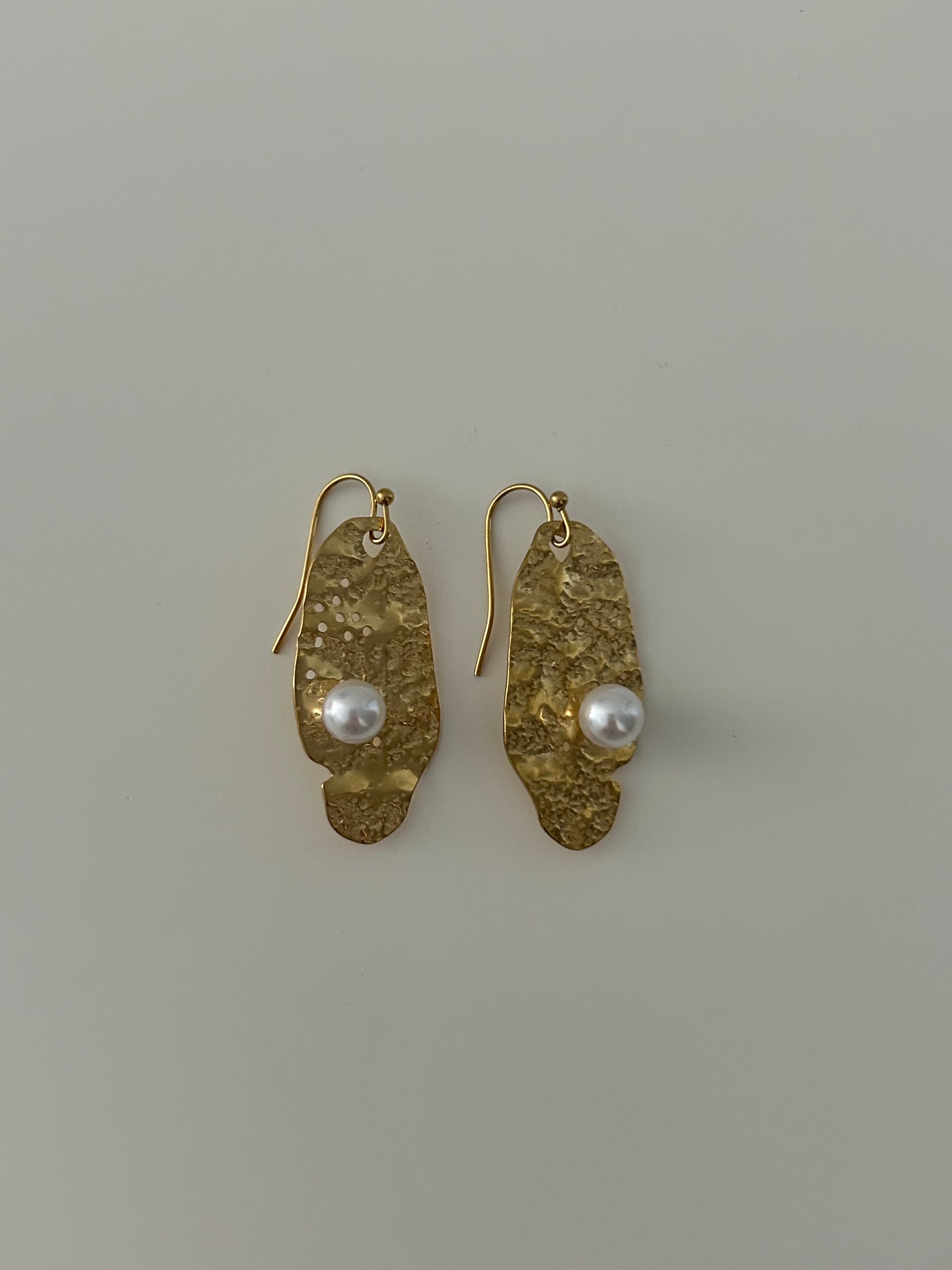 Featuring an oval shape and hammered texture, AGATA Earrings are adorned with a delicate pearl for an added touch of elegance.