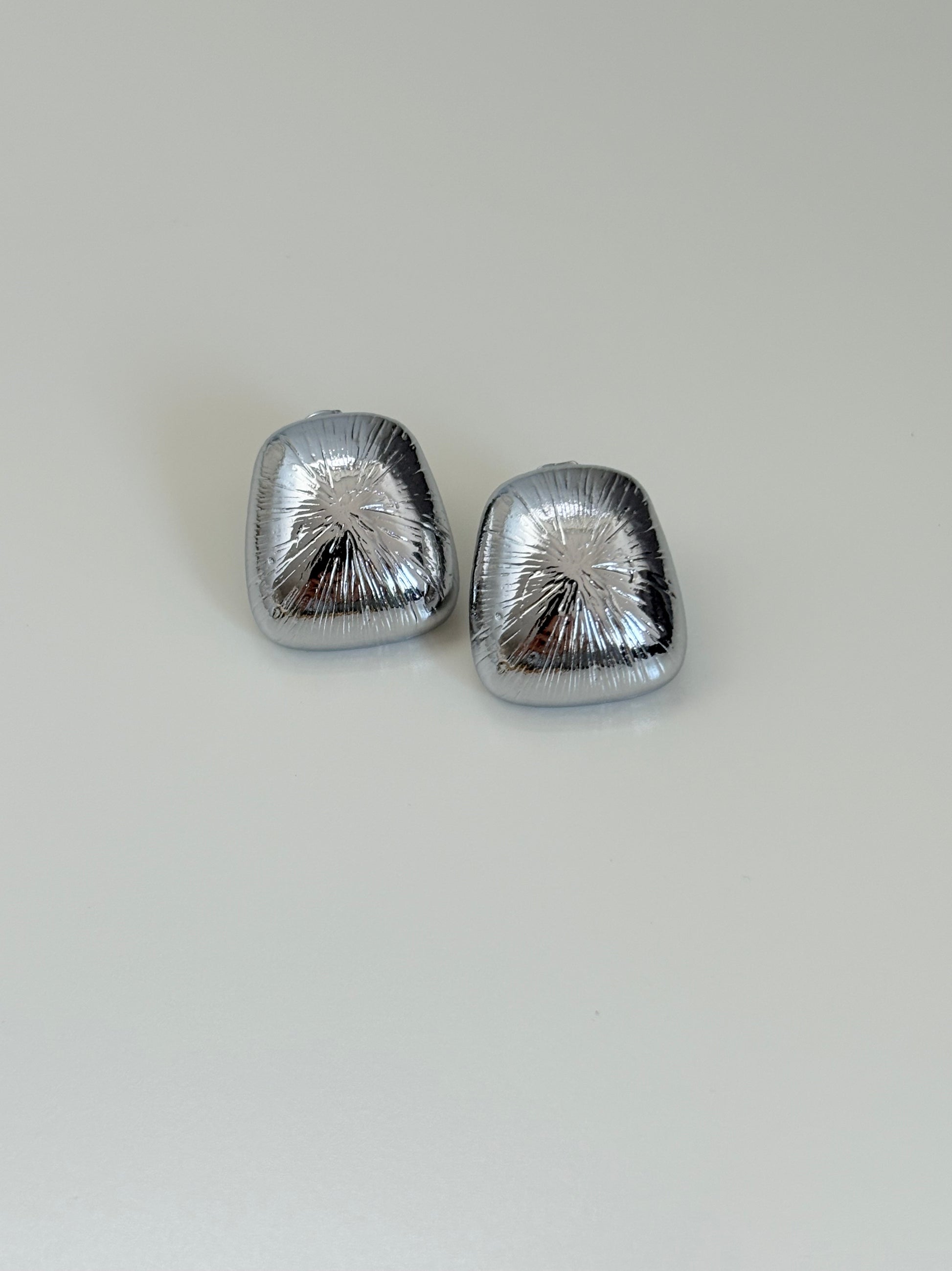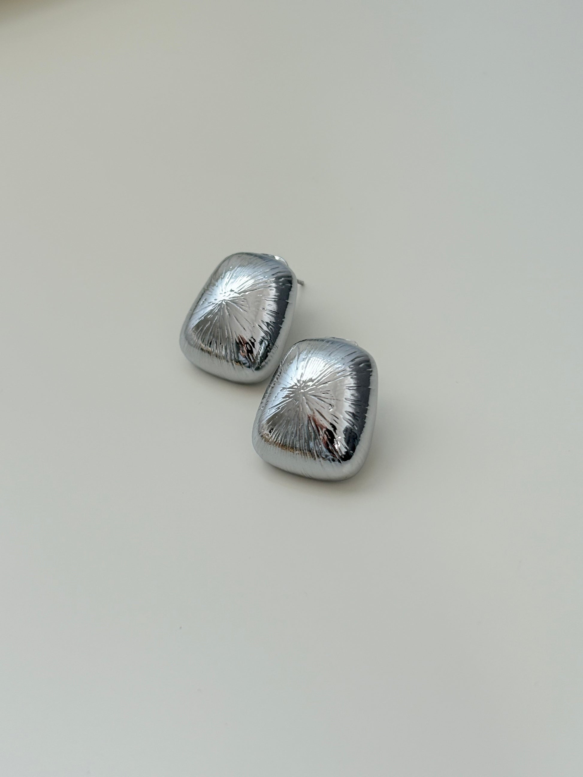 - Boucles d'oreilles argentées striées épaisses de forme trapèze