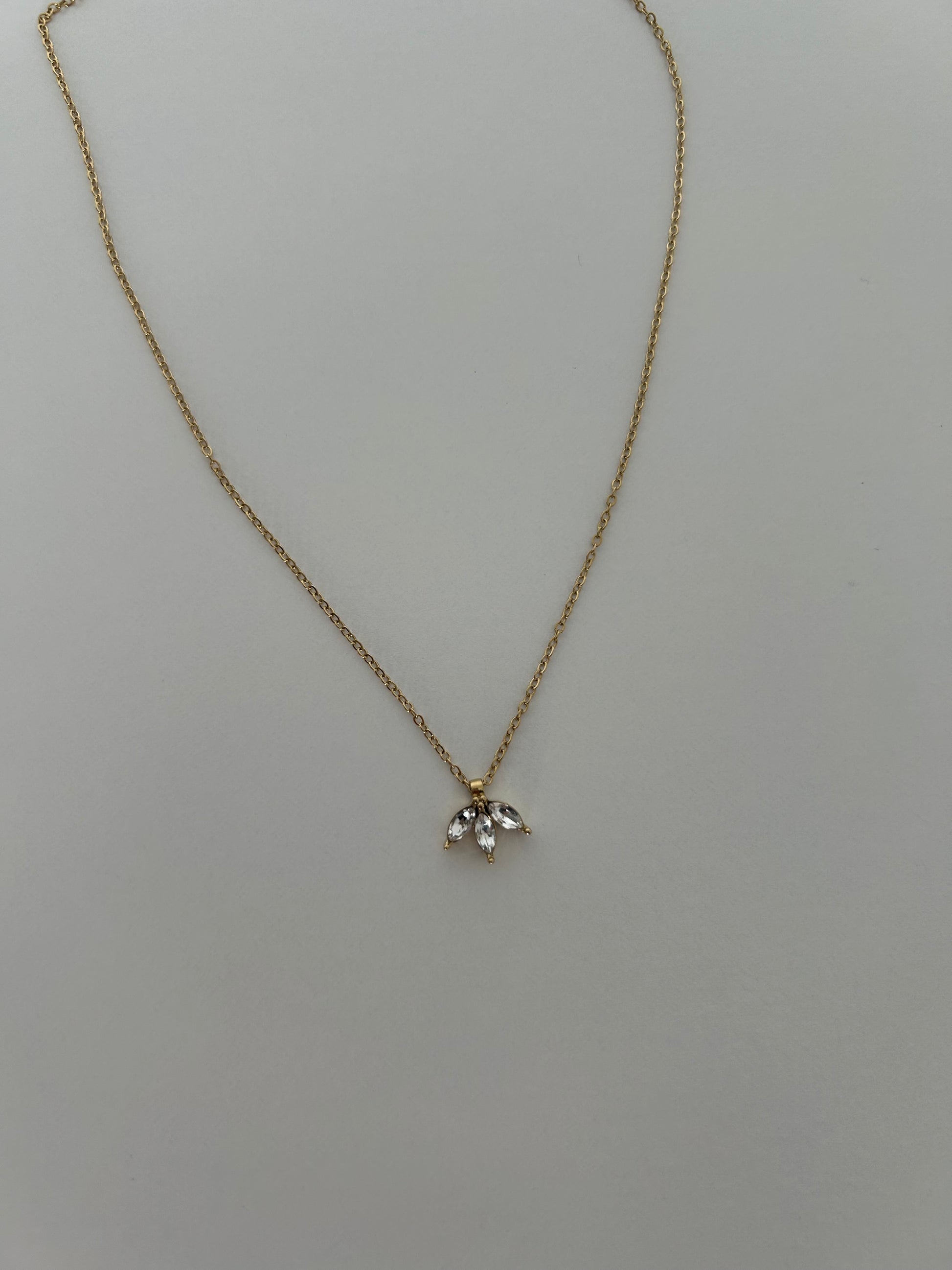 Ajoutez une touche d'éclat à votre tenue avec le collier CALISTA. Son joli pendentif doté de 3 pierres zircons étincelantes captent les regards, tandis que la chaîne réglable vous permet d'ajuster sa longueur à votre souhait.