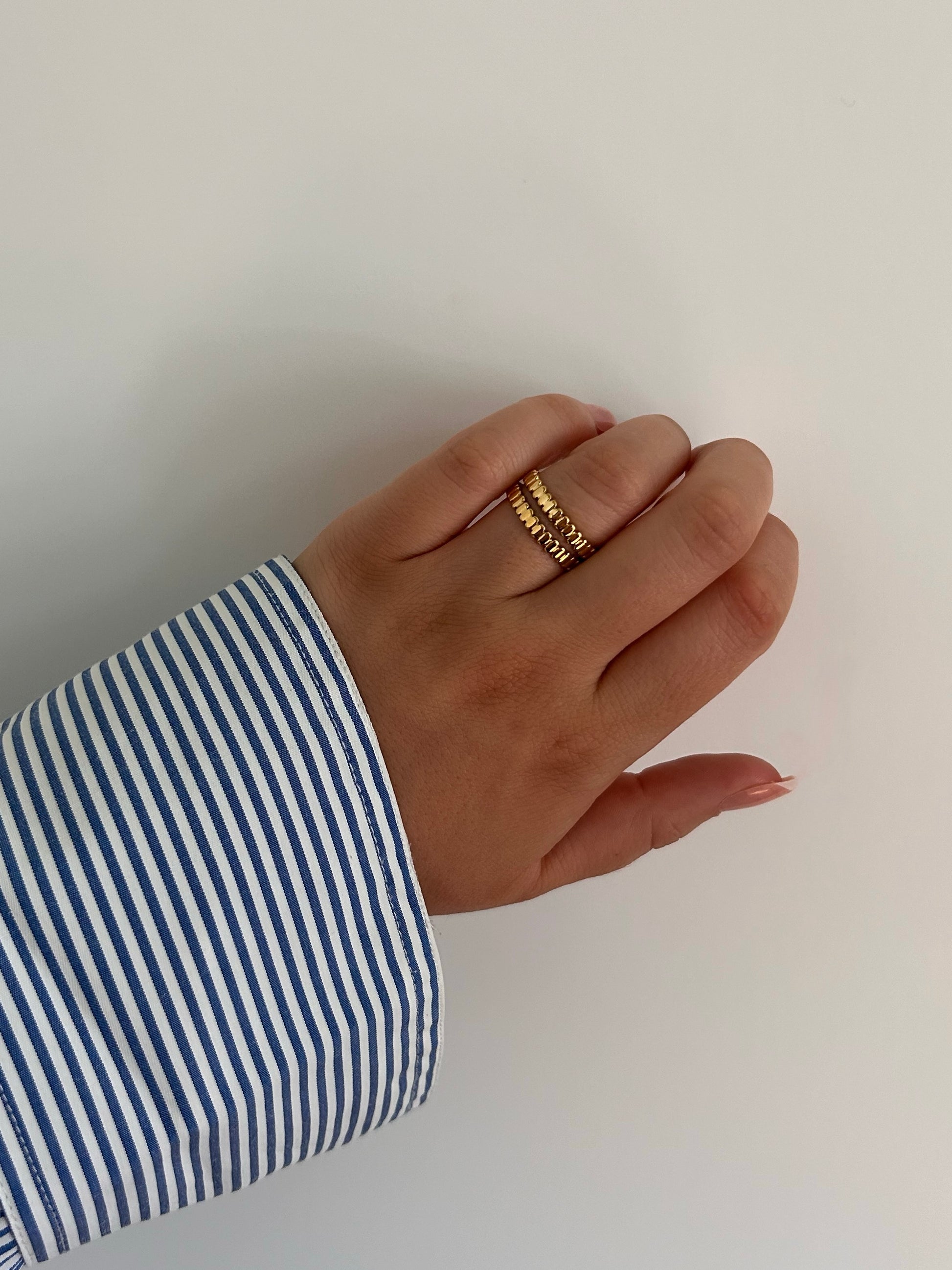 Découvrez la bague ELLA, raffinée et contemporaine avec son design en anneau ondulé. Idéale à porter seule ou en association avec nos autres bagues.