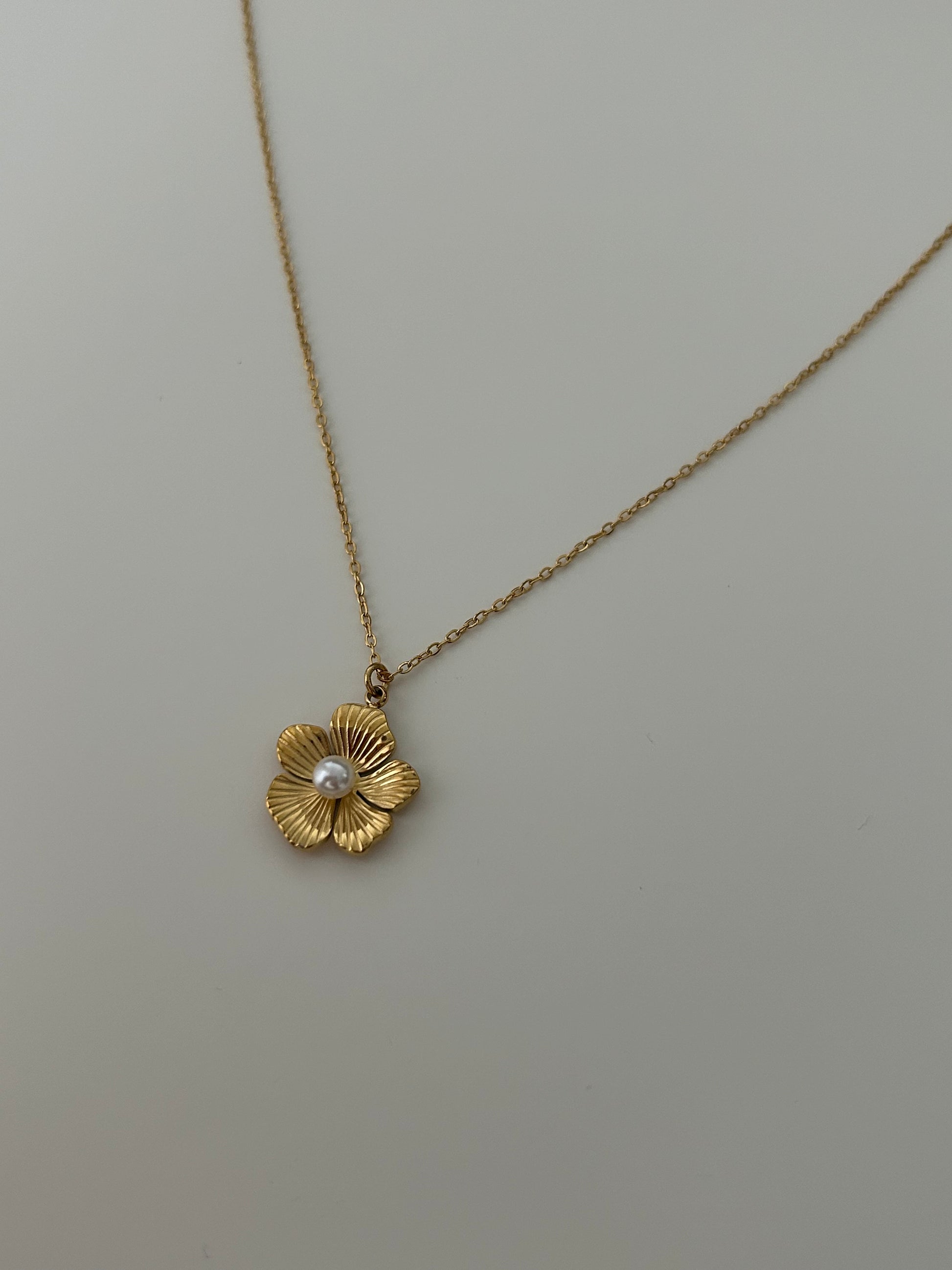 Découvrez le collier FLORA avec son élégant pendentif en forme de fleur doté d'une perle délicate.