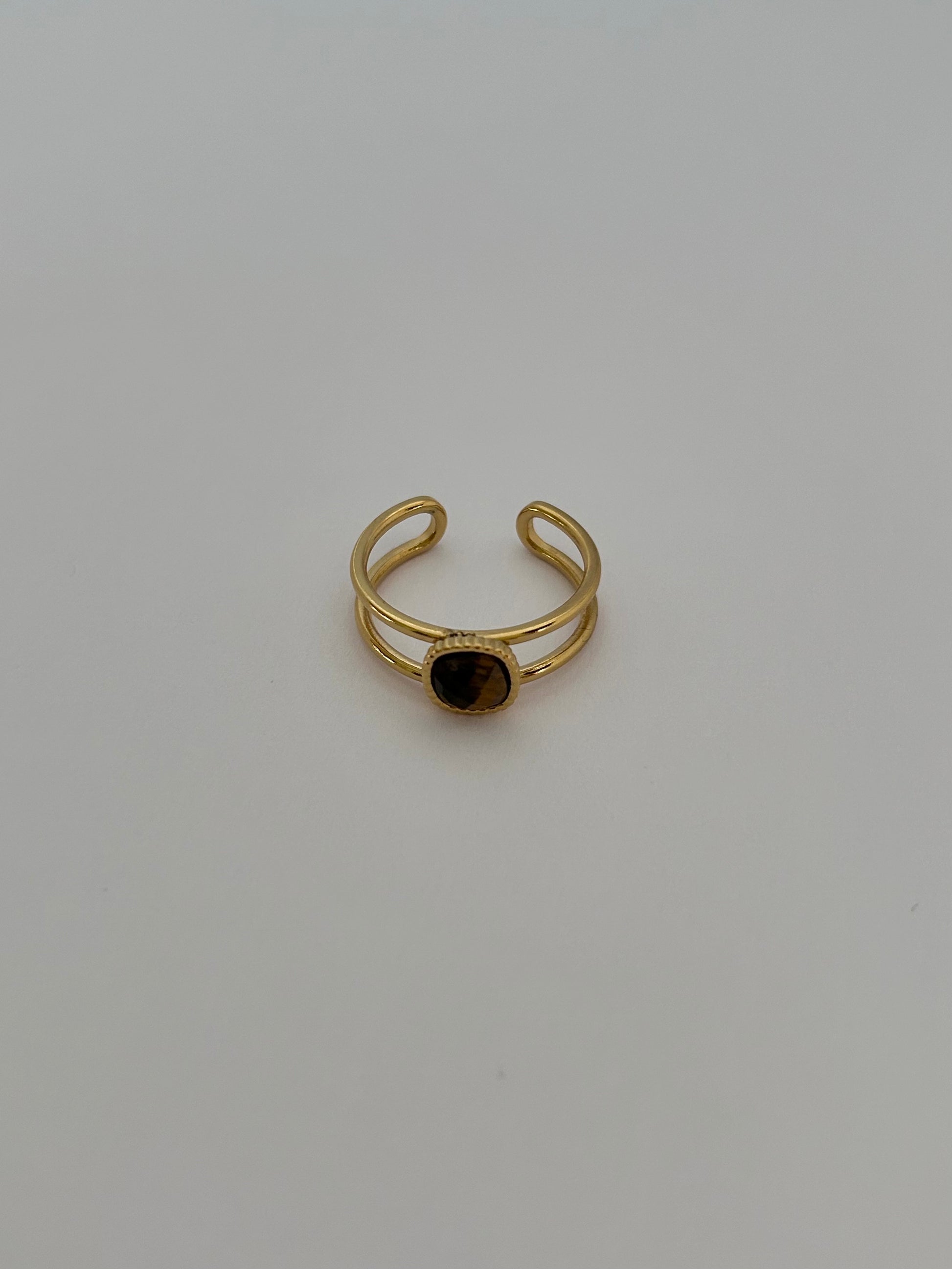 - Bague dorée composée de deux anneaux surmontés d'une pierre de couleur marron