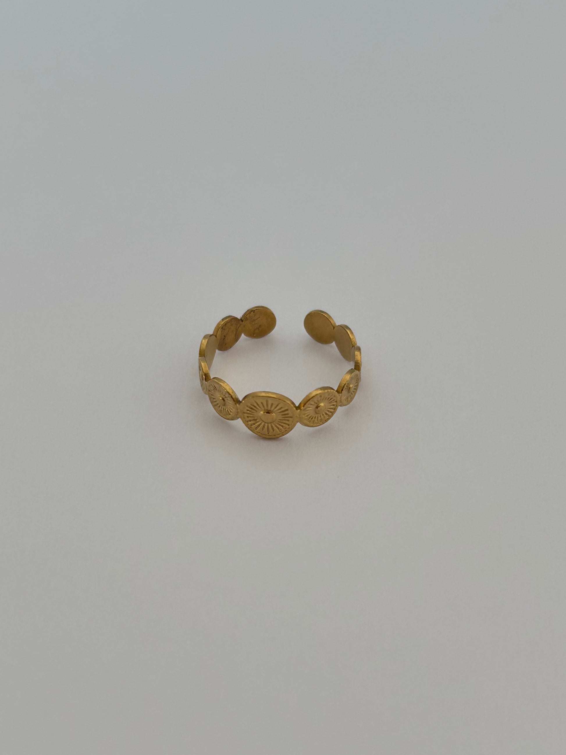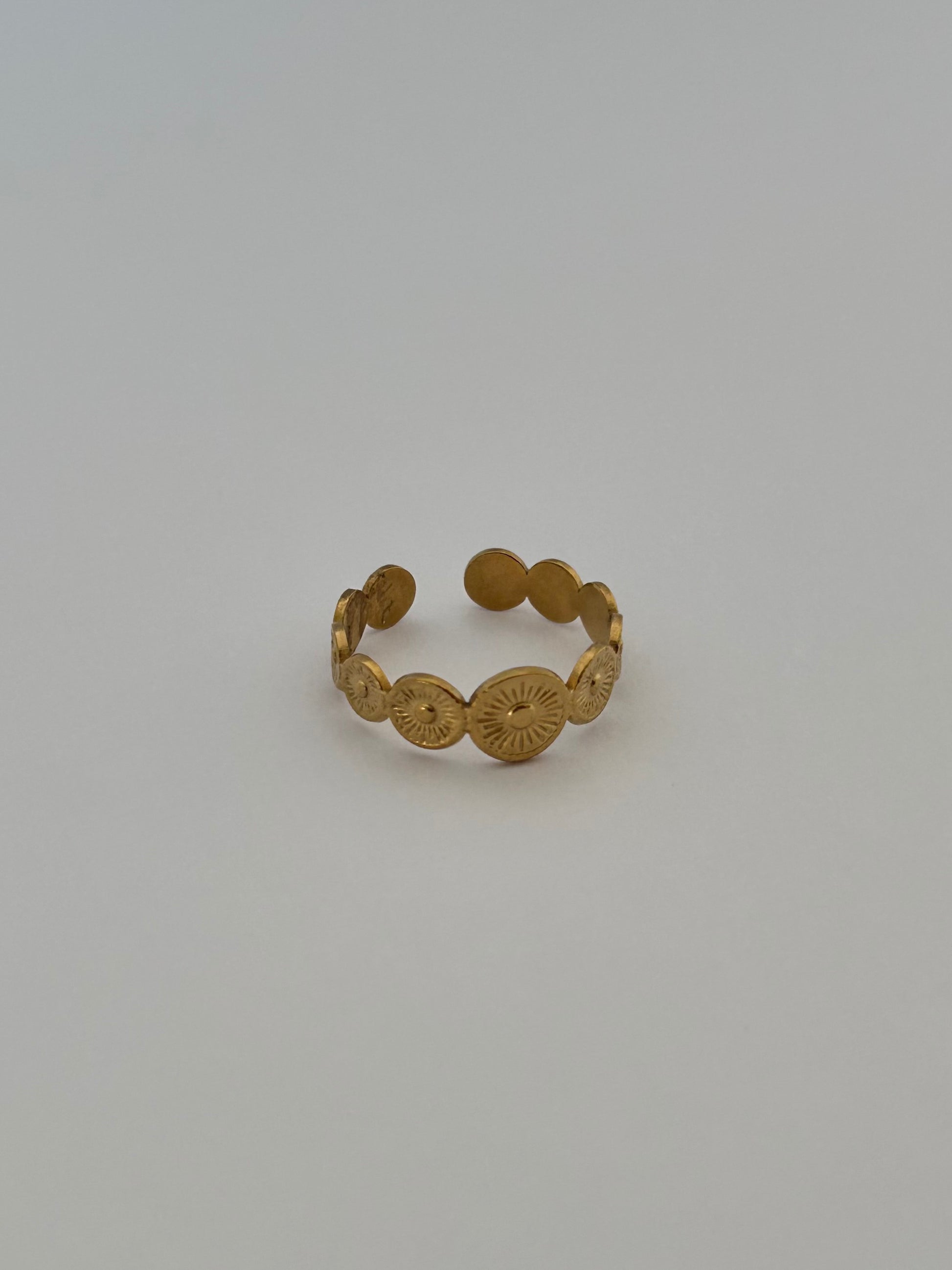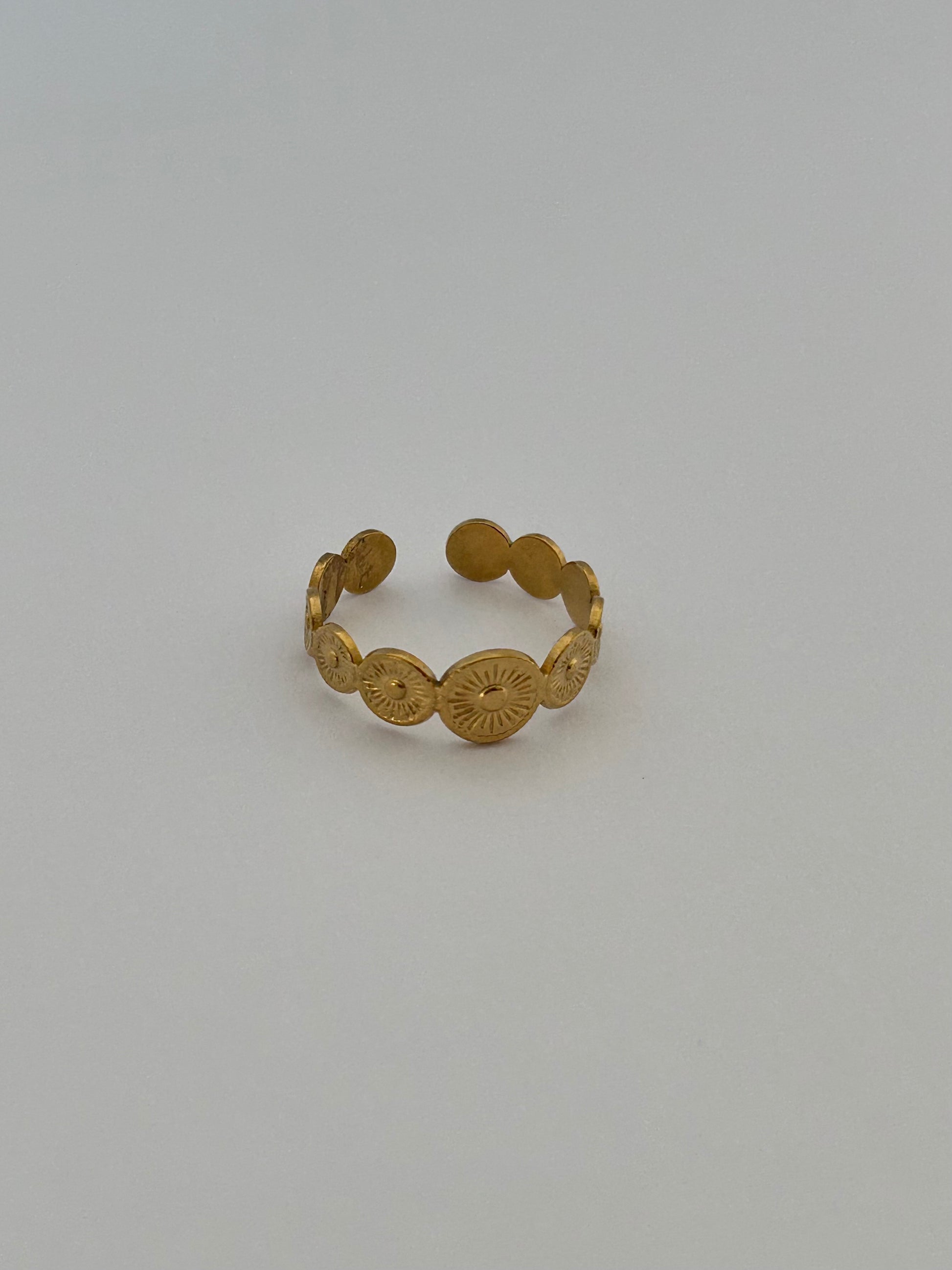 Jolie bague composée de pièces rondes martelées dorées