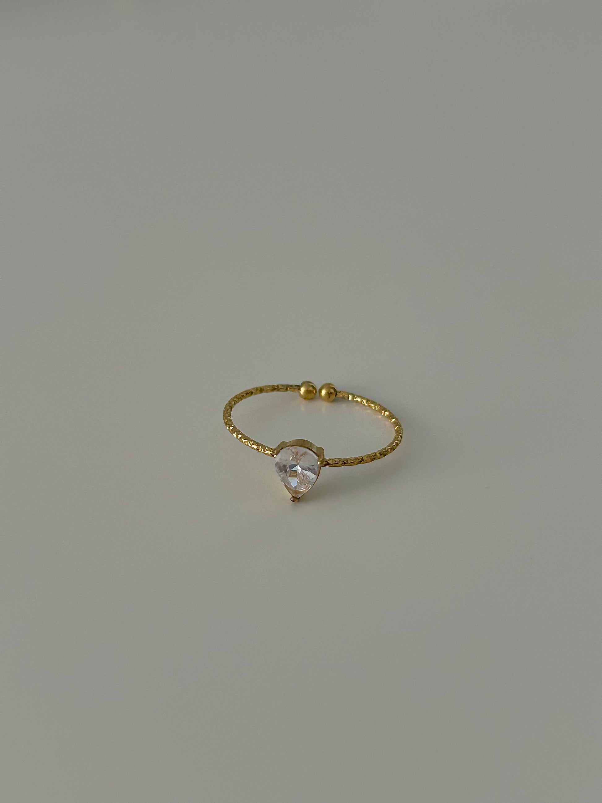 Cette superbe bague se compose d'un anneau délicat monté d'une pierre en forme de larme.